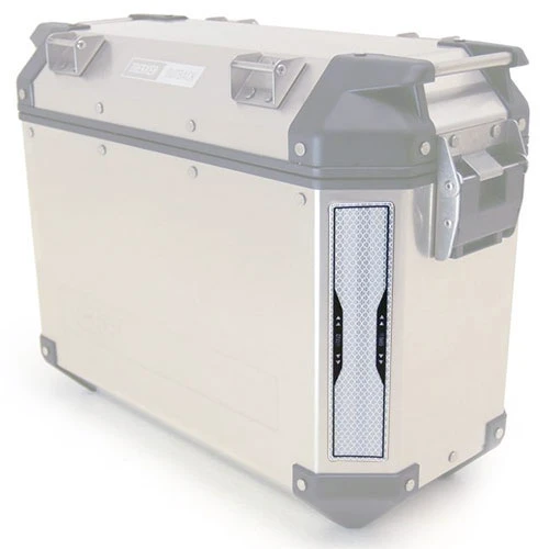 Coppia di adesivi rifrangenti serigrafati, da applicare posteriormente sulle valigie Trekker Outback. Dimensioni 205 x 45 mm.