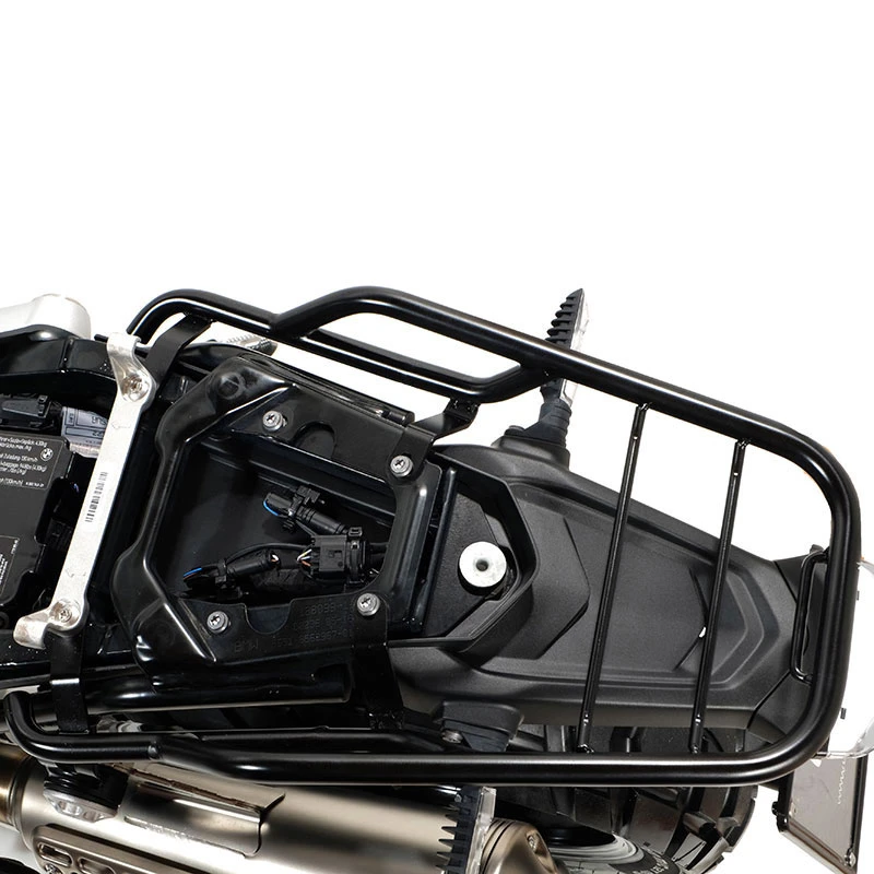 Robusto e pratico corredato di guide per il fissaggio di borse o bauletti non sporca l’estetica della moto.