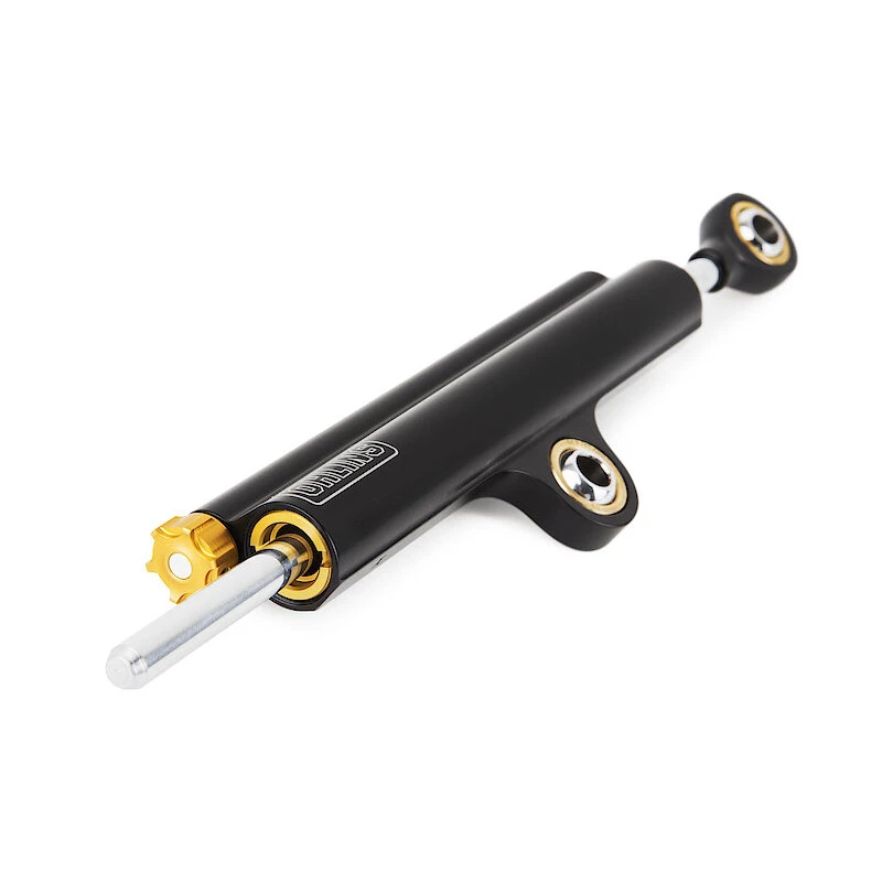 Ammortizzatore di Sterzo Ohlins. Pressurizzato. 16 click di Regolazione. Gli ammortizzatori di sterzo Ohlins sono dotati di un’ampia gamma di regolazione per il setup perfetto.