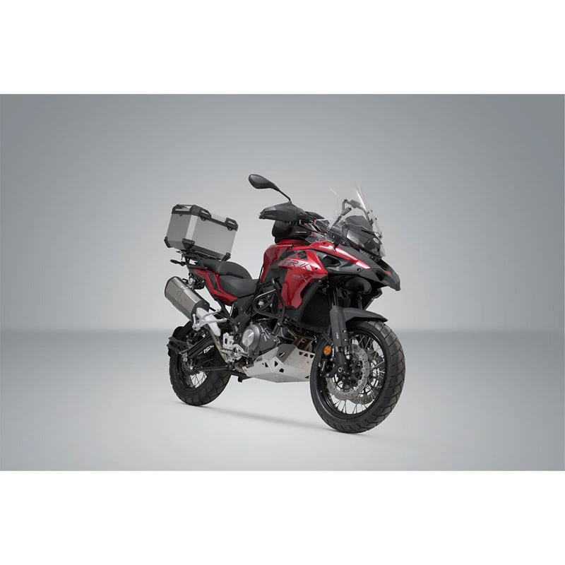 Questa soluzione completa comprende tutti gli articoli necessari per il montaggio del bauletto: bauletto TRAX ADV , portabagagli specifico del modello, piatto adattatore e kit serratura TRAX. E il prossimo viaggio può iniziare… perché la progettazione del TRAX ADV ha messo al centro la stabilità e l’impermeabilità alla polvere e all’acqua e la semplicità d’uso. Che si tratti di un’avventura fuoristrada, di un viaggio a lunga distanza o di una gita breve, il bauletto in alluminio con le pareti spesse 1,5 mm convince in qualsiasi sfida. Il portabagagli specifico del modello e il piatto adattatore assicurano il fissaggio del bauletto, che viene bloccato semplicemente spingendo e usando la chiusura di bloccaggio.