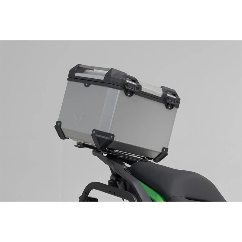 Questa soluzione completa comprende tutti gli articoli necessari per il montaggio del bauletto: bauletto TRAX ADV , portabagagli specifico del modello, piatto adattatore e kit serratura TRAX. E il prossimo viaggio può iniziare… perché la progettazione del TRAX ADV ha messo al centro la stabilità e l’impermeabilità alla polvere e all’acqua e la semplicità d’uso. Che si tratti di un’avventura fuoristrada, di un viaggio a lunga distanza o di una gita breve, il bauletto in alluminio con le pareti spesse 1,5 mm convince in qualsiasi sfida. Il portabagagli specifico del modello e il piatto adattatore assicurano il fissaggio del bauletto, che viene bloccato semplicemente spingendo e usando la chiusura di bloccaggio.