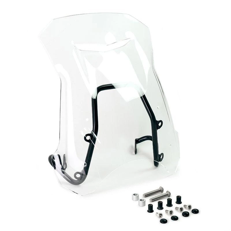 Completo di supporti e viteria, e’ perfettamente in stile con le linee del frontale. Realizzato in PMMA spessore 4mm (Acrilico). Si monta molto facilmente ed offre un ottima protezione areodinamica. La feritoia frontale elimina le turbolenze, e il tubo di sostegno funge anche da supporto GPS.