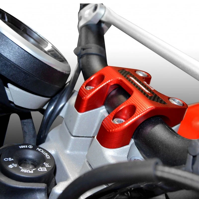 Lavorato dal pieno in lega leggera, con successivo trattamento di anodizzazione superficiale con applicazione in fibra di carbonio.