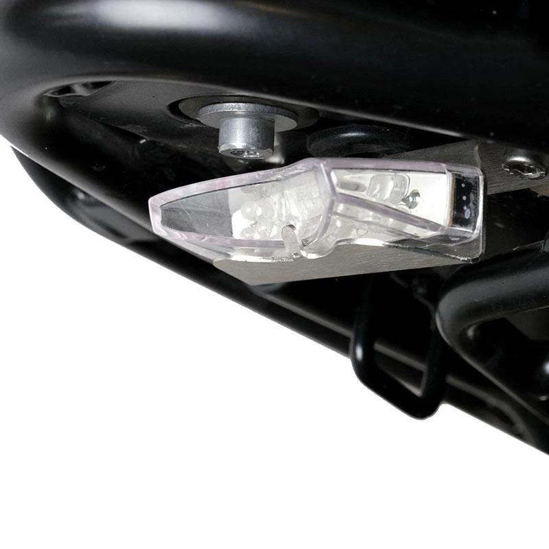 E’ dotato di luce posteriore e luce stop, si puo’ montare abbinato al Portatarga Basso cod 1610 ed al Terminale Telaio cod 1642.