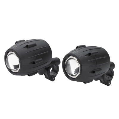 Proiettori supplementari alogeni di profondità. Coppia di proiettori supplementari universali con luci alogene, di profondità, da montare sui paramotori tubolari (ø minimo 21mm e ø massimo 26mm). Vanno collegati alla batteria della moto, e sono dotati di interruttore da montare sul manubrio tubolare. Non prevedono nessuna modifica all’impianto elettrico della moto.