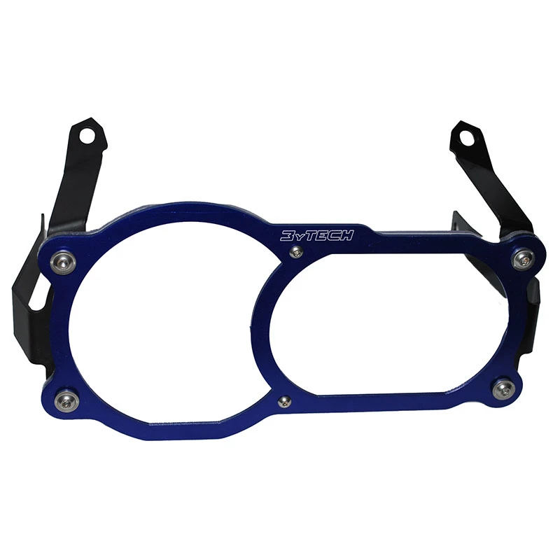 Mascherina in alluminio anodizzato e polycarbonato disponibile in quattro colori : blu,rosso,silver e nero. I traversini laterali sono avvitati in modo stabile e fisso.