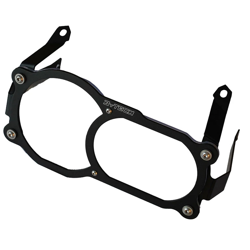 Mascherina in alluminio anodizzato e polycarbonato disponibile in quattro colori : blu,rosso,silver e nero. I traversini laterali sono avvitati in modo stabile e fisso.