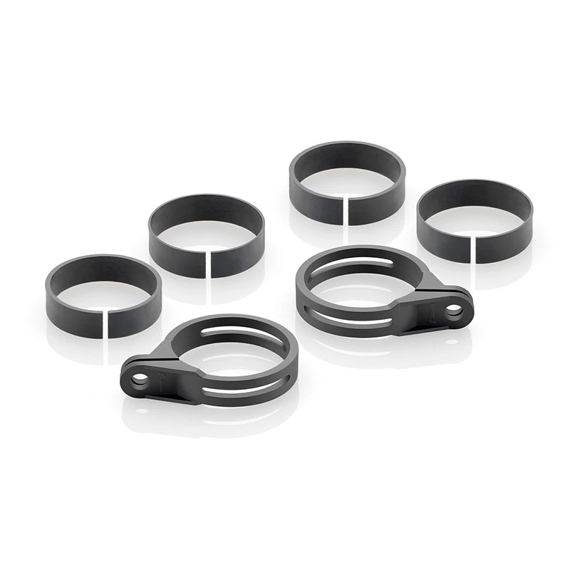 Il Kit include 2 fascette di diametro 50/52 mm per essere adattato a differenti modelli di moto in relazione al diametro delle forcelle anteriori (Ø 48-55 mm).
