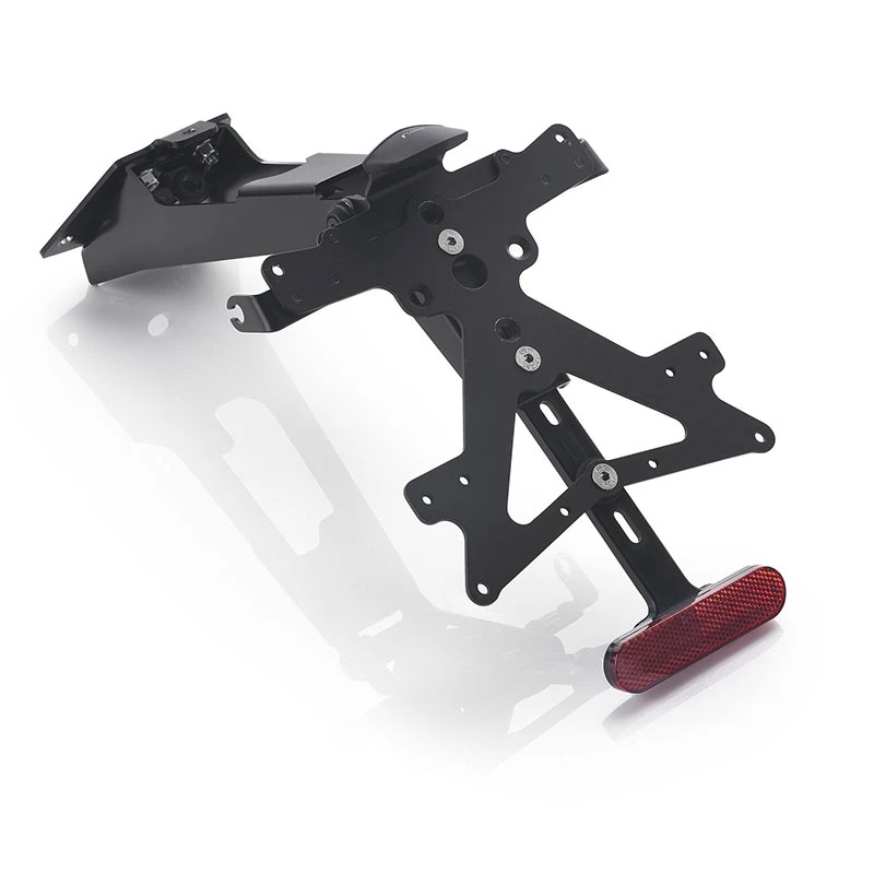 Il kit porta targa, in alluminio ricavato dal pieno, permette di rivisitare completamente il retrotreno, oltre a garantire ottime prestazioni strutturali e un alto impatto estetico, grazie al suo design minimal e al materiale di pregio. Di facile montaggio, poichè studiato per lo specifico modello di moto a cui è dedicato. Venduto singolarmente richiede l’acquisto di un piatto targa specifico Rizoma, scegliendo la dimensione conforme alla legislazione del proprio Paese.