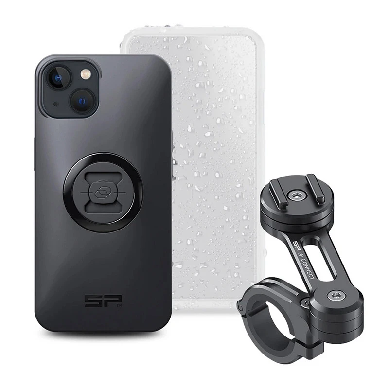 SP Connect Moto Bundle è il kit composto da custodia per cellulare, attacco al manubrio Moto Pro, e protezione impermeabile. Il Moto Bundle ti permette di montare il tuo smartphone sulla tua motocicletta in pochi secondi. Fissa il supporto Moto Pro al manubrio della tua motocicletta e sei pronto a fissare lo smartphone posizionandolo sul supporto e girandolo di 90 gradi in senso orario. Il tuo smartphone è ora fissato con sicurezza al centro del campo visivo, permettendo di navigare, accedere alle tue playlist, leggere messaggi. Se necessario usa la copertura impermeabile per proteggere il tuo telefono da pioggia e sporco oltre a fornire resistenza agli urti aggiuntiva.