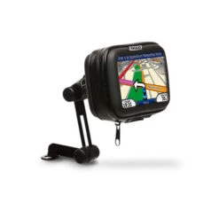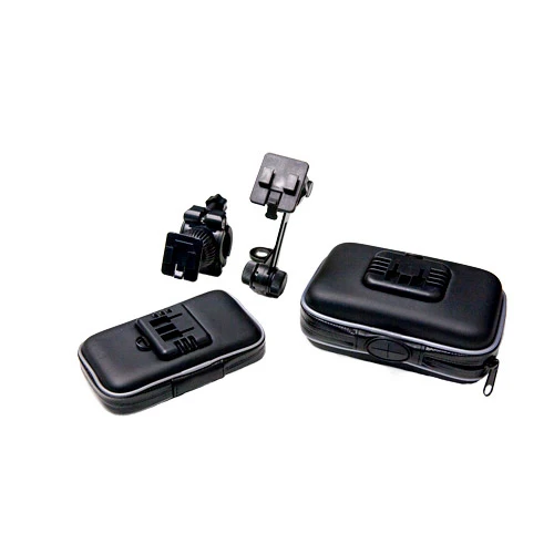 Porta navigatore impermeabile universale. A seconda della versione scelta, l’attacco può essere fissato al manubrio o allo specchietto retrovisore, in modo semplice e rapido, grazie al suo fissaggio regolabile.