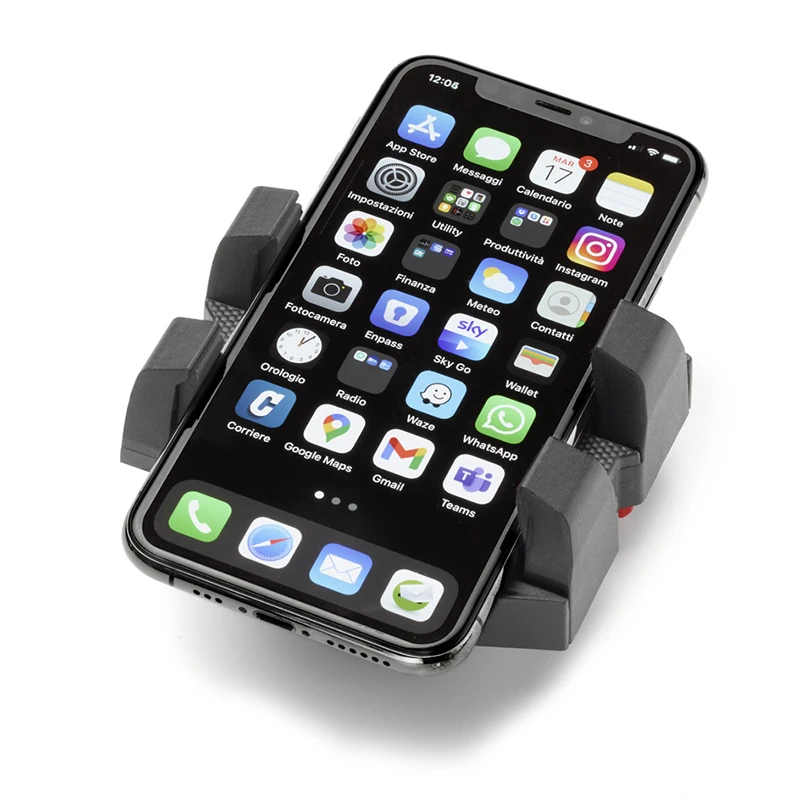 Pinza universale porta smartphone per il fissaggio su moto, scooter, biciclette, monopattini e quad.
