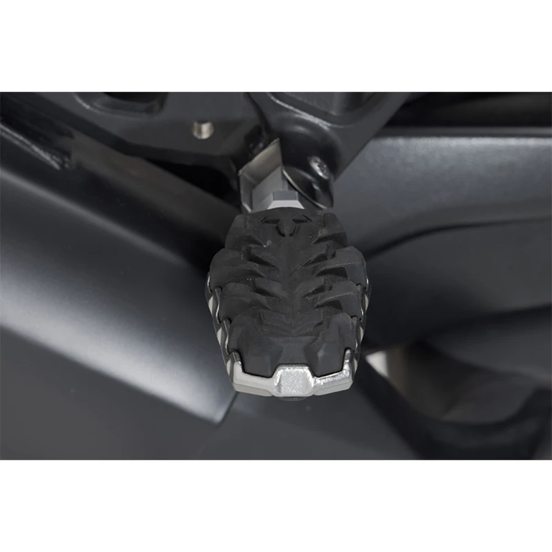 Le pedane passeggero originali non offrono una posizione comoda? Allora il kit pedane passeggero EVO per la Harley-Davidson Pan America è la soluzione ideale. Un sistema ingegnoso, costituito da elementi girevoli con denti ad incastro fissi, consente ben 36 differenti regolazioni. La posizione della pedane può essere regolata verso il basso, in avanti e indietro e può essere inclinata secondo le esigenze individuali.Gli adattatori a giunto specifici del modello vengono semplicemente montati sull’attacco della pedana utilizzando le parti originali. Il funzionamento di questo meccanismo è spiegato nelle istruzioni per il montaggio.