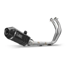 Con coppa e fascetta di ancoraggio in carbonio, il corpo centrale è realizzato in acciaio inox nero con effetto “Black Moon”, conferendo al prodotto un look aggressivo. Di forma esagonale, lo scarico è dotato di dB-killer estraibile.