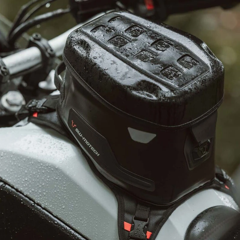 La PRO Cross WP è una borsa serbatoio con cinghie, impermeabile, per tutti i motociclisti che non lasciano nulla al caso. Grazie alle robuste cinghie, la borsa serbatoio è sotto tensione costante e si mantiene in posizione eretta. La PRO Cross WP può essere posizionata anche su piccole moto da enduro con un serbatoio stretto. Può essere rimossa rapidamente utilizzando le quattro chiusure rapide.