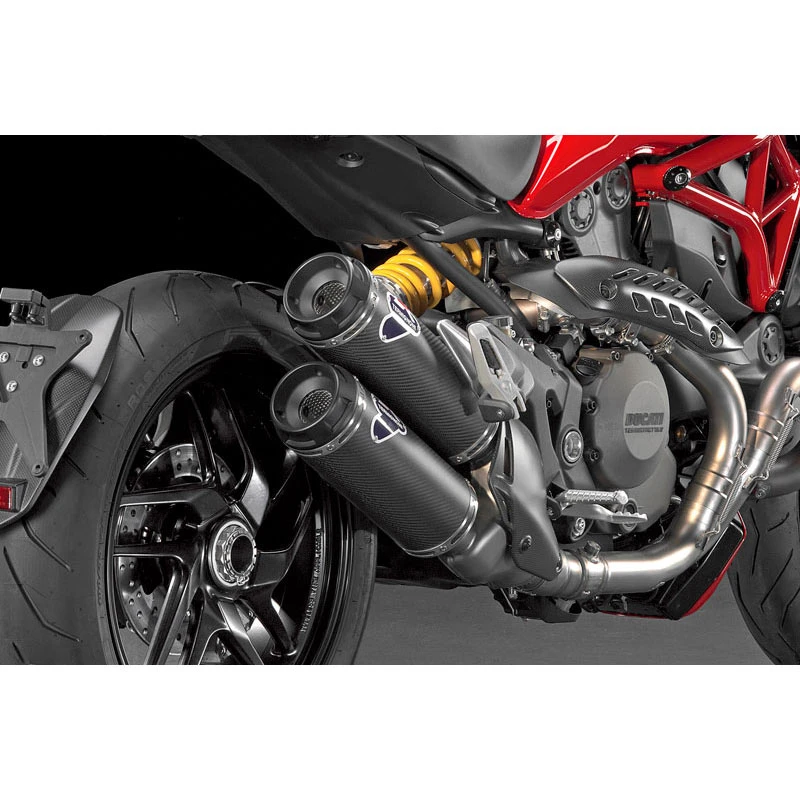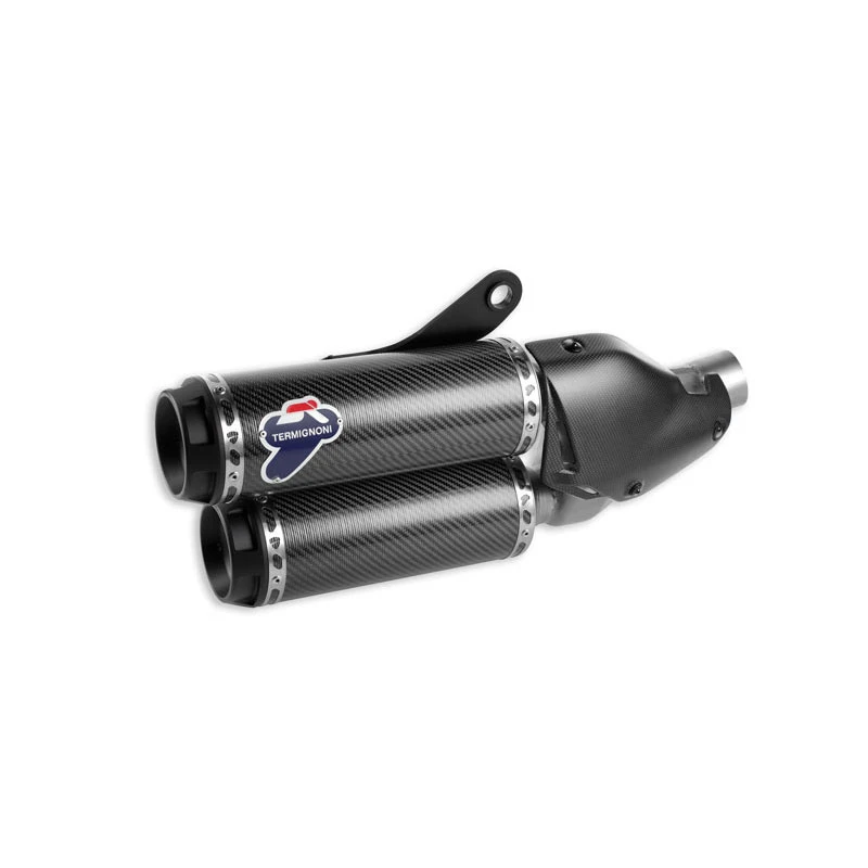 Dotati di catalizzatore, questi scarichi prodotti da Termignoni rispettano la normativa UE vigente per la circolazione su strada; la leggerezza del carbonio e la maestria tecnica di Ducati, fanno si che tali requisiti diventino essi stessi sintesi di emozione e divertimento.