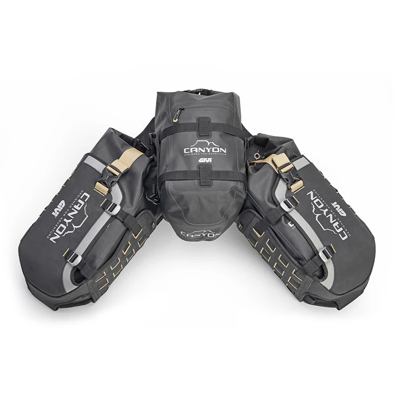 La Canyon-Base con una configurazione GIVI a pieno carico permette una capacità massima di 60 litri.