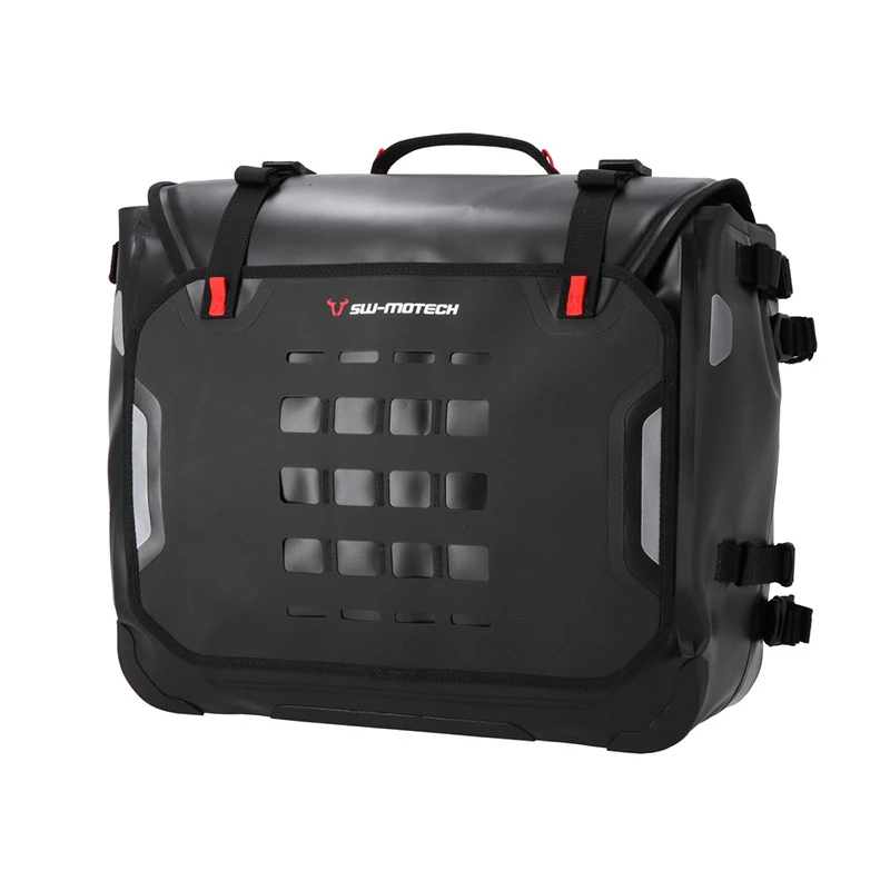 Il modello più grande del trio SysBag WP è realizzato interamente in TPU e ha un volume complessivo di 40 litri. La SysBag WP L è dotata di una chiusura roll-top e di un coperchio sovrapposto. La tasca interna è rimovibile e due divisori liberamente posizionabili con chiusure in velcro facilitano l’organizzazione dei bagagli. La SysBag WP L è progettata per l’uso offroad senza eccezioni: le fibbie della cintura dello scomparto anteriore sono fissate appositamente in alto in modo che nessun ramo possa impigliarsi nei percorsi stretti. I bordi esterni della borsa sono rivestiti in robusto Hypalon, che fornisce una protezione aggiuntiva in caso di caduta. Con le quattro cinghie di compressione su entrambi i lati, la borsa può essere fissata per formare un’unità compatta, anche con un piccolo carico. Sulla parte anteriore della SysBag L WP è presente uno spazioso scomparto aggiuntivo facile da raggiungere che offre spazio per una tuta antipioggia o carte in formato A4. I due scomparti impermeabili con cerniera all’interno della borsa e del coperchio offrono spazio in più per gli oggetti più piccoli.