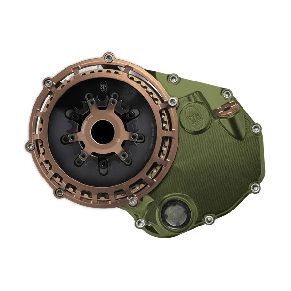 Kit frizione EVO-GP con campana e dischi 40D e nuova copertura motore ricavata dal pieno.