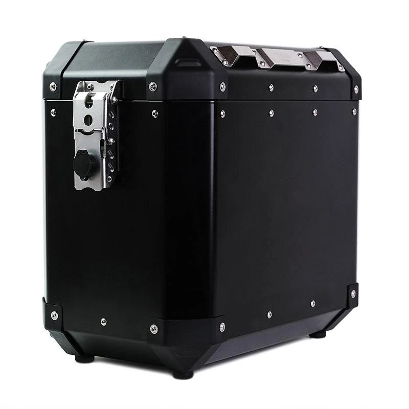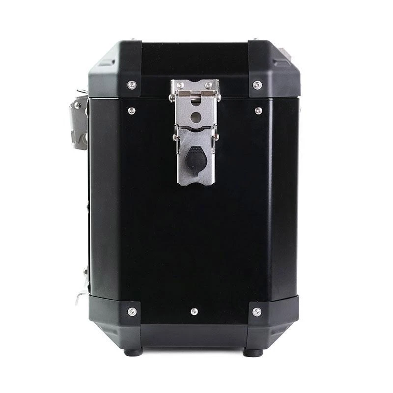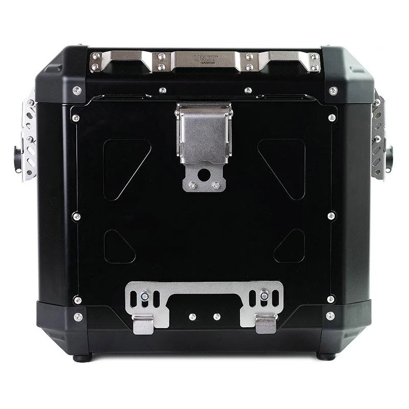 Volevamo delle borse eleganti classiche e robuste, con belle cerniere in acciaio e dettagli curati: dettagli creati per l’avventura e resistenti ad ogni condizione. Si fissano a qualsiasi telaio in tubo tondo di diametro mm 18 grazie al sistema di aggancio di sicurezza posizionato sul retro della borsa, la chiusura si allarga automaticamente per un facile montaggio e smontaggio dal telaio borse, la leva interna e’ ricavato dal pieno al CNC in pregiata lega di allumnio. Il coperchio si asporta completamente e si può’ aprire su ambo i lati, e’ provvisto di fissaggi nella parte interna, ed é incluso un elastico da usare come supporto per guanti, documenti e piccoli oggetti. La ritenuta del coperchio e’ in cuoio con automatici sganciabili, Le chiusure sono predisposte per alloggiare un lucchetto extra oltre a quello in dotazione. Il corpo borsa e’ completamente foderato di robusto neoprene da 2,5 mm in grado di attutire gli urti. Le cerniere, le serrature e tutti i particolari sono in acciao inox palinati ed elettrolucidati, cosa che non troverete in nessun prodotto analogo in commercio. Gli angolari sono in robusto ABS sostituibili in caso di caduta cosi come ogni singolo componente. Le nostre borse Alu sono completamente Made in Italy, montate a mano una ad una.