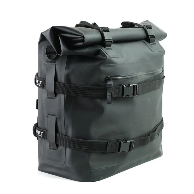 Capienza 35 – 45 L, si monta in pochi secondi ai classici telai in tubo per borse Atlas in alluminio senza l’aggiunta di ulteriori adattatori, è tutto incluso. Può anche essere facilmente regolata per adattarsi alla maggior parte dei telai in tubo da 18 mm di diametro sul mercato, come ad esempio i telai OEM BMW. È dotata di tasche con zip impermeabili sia internamente che esternamente e di fibbie con chiusure magnetiche per una rapida apertura. Per un uso estremo consigliamo di usare gli agganci sulla piastra ed i passanti laterali per il fissaggio di fasce aggiuntive orizzontali come le nostre codice UG008 (vedi foto).