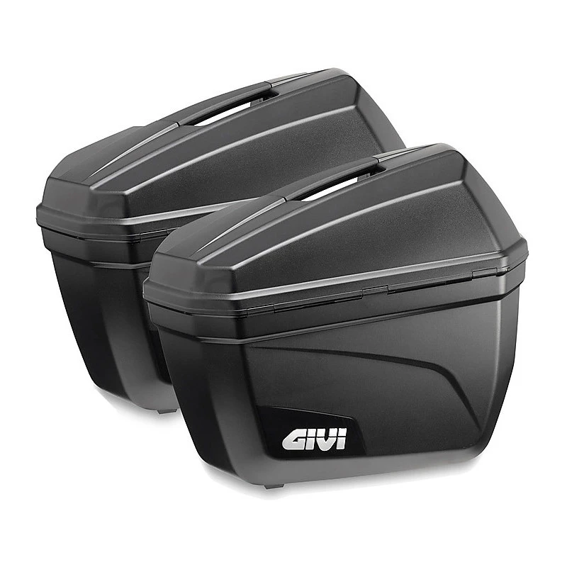 Coppia di valigie laterali nere. Carico massimo: 5Kg. Capienza: 22litri.