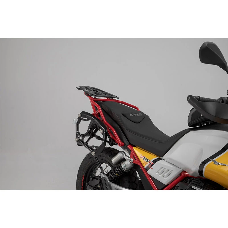 Le robuste valigie in alluminio TRAX ADV sono adatte a qualsiasi distanza: il design supporta la stabilità del robusto acciaio della parete in alluminio saldato da 1,5 mm. Il coperchio completamente removibile completo di manici in allumino anodizzato e chiusure rapide facilita il carico e lo scarico della valigia da moto, mentre i bordi a taglio obliquo garantiscono un’elevata libertà al corpo nella guida in curva. Con questa soluzione completa disporri di tutti i componenti necessari per affrontare lunghi viaggi con TRAX: due valigie laterali TRAX ADV, due telai portaborse SW MOTECH removibili, un kit adattatore, un kit serratura, un limitatore di apertura e un antifurto a un prezzo affascinante.